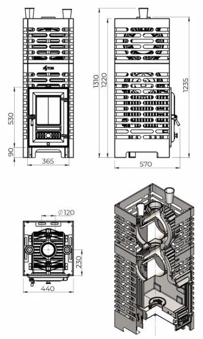 Основные характеристики чугунной банной печи ASTON Шторм Турбопар б/в
