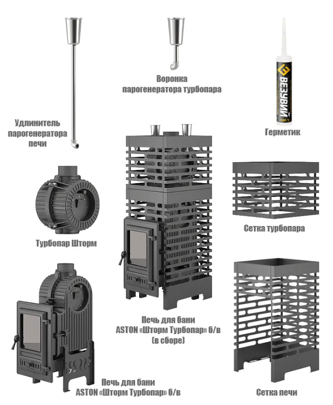 Основные преимущества чугунной банной печи ASTON Шторм Турбопар б/в