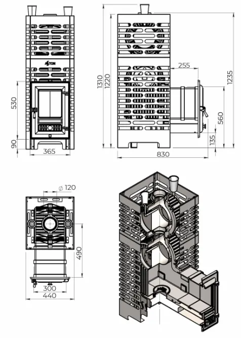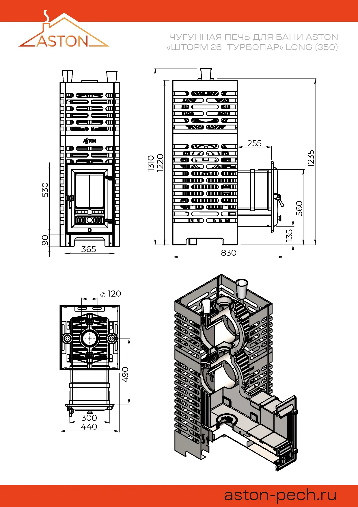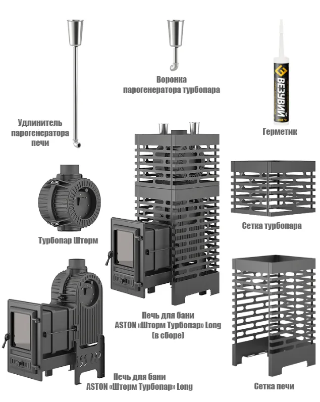 Основные характеристики чугунной банной печи ASTON Шторм Турбопар Long