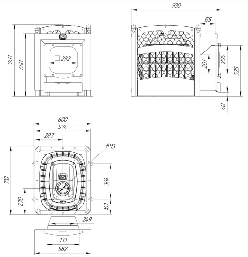 Былина-сетка 24 Ч Панорама - честная печь! Толщина корпуса цельнолитой чугунной топки составляет настоящие 10 мм! Чугунные топки для «Былины» произведены из серого чугуна по ГОСТ 1412-85. Конвектор-сетка изготавливается из тонкостенной качественной конструкционной стали. Классическая внешняя каменка с легкостью вмещает до 150 кг камней. А глубокая топка позволяет использовать дрова длиной до 490 мм.
