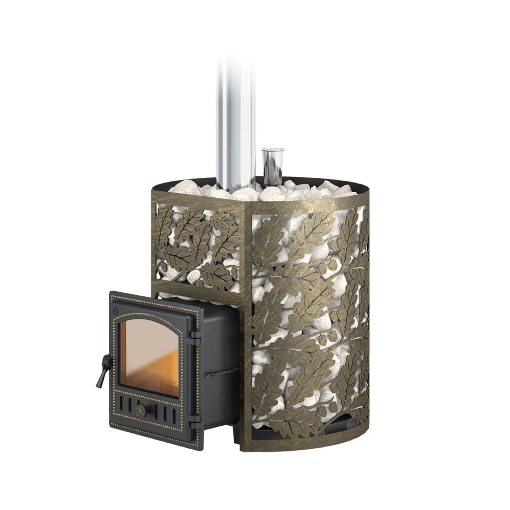 В комплектацию входит: Сборная печь со съёмным топочным тоннелем и чугунной дверкой.Цилиндрическая закрытая каменка из нержавеющей стали марки AISI 430, рассчитанная на загрузку 35-40 кг камней мелкой фракции.Система капельной подачи воды на камни закрытой каменки.Канал для подачи воздуха в область вторичного дожига.Массивный чугунный колосник.Зольный ящик, выполненный из прочной стали, позволяющий оперативно проводить уборку печи.Стальной конвекционный кожух для укладывания камней.Термостойкий герметик для сборки печи.Инструкция по монтажу и эксплуатации.