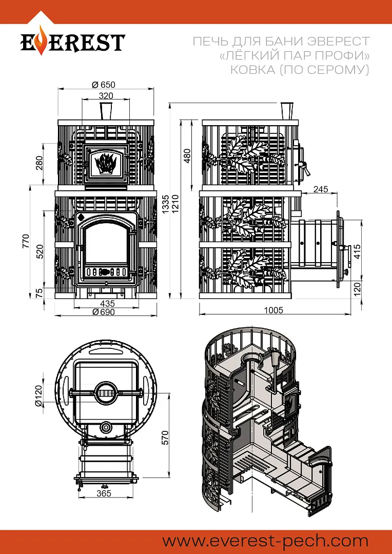 Печь для бани Эверест "Легкий пар Профи" Ковка (по-серому)