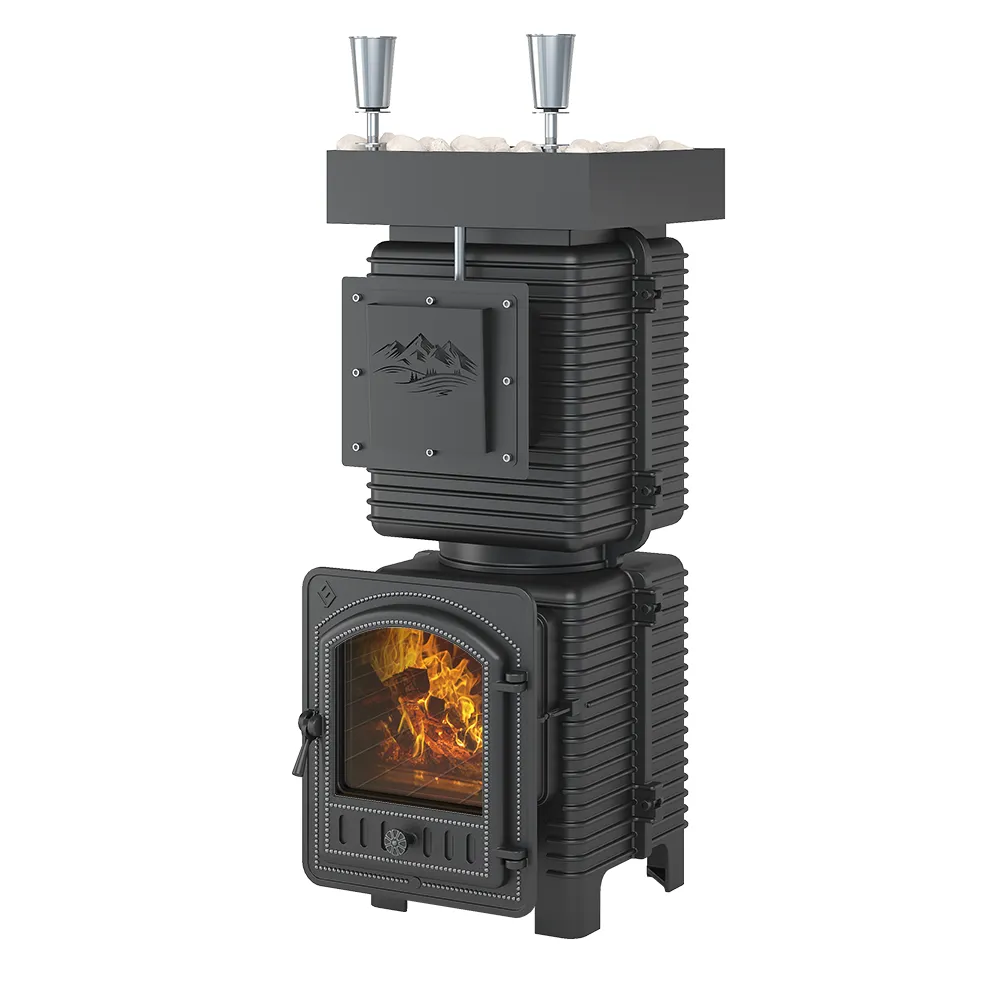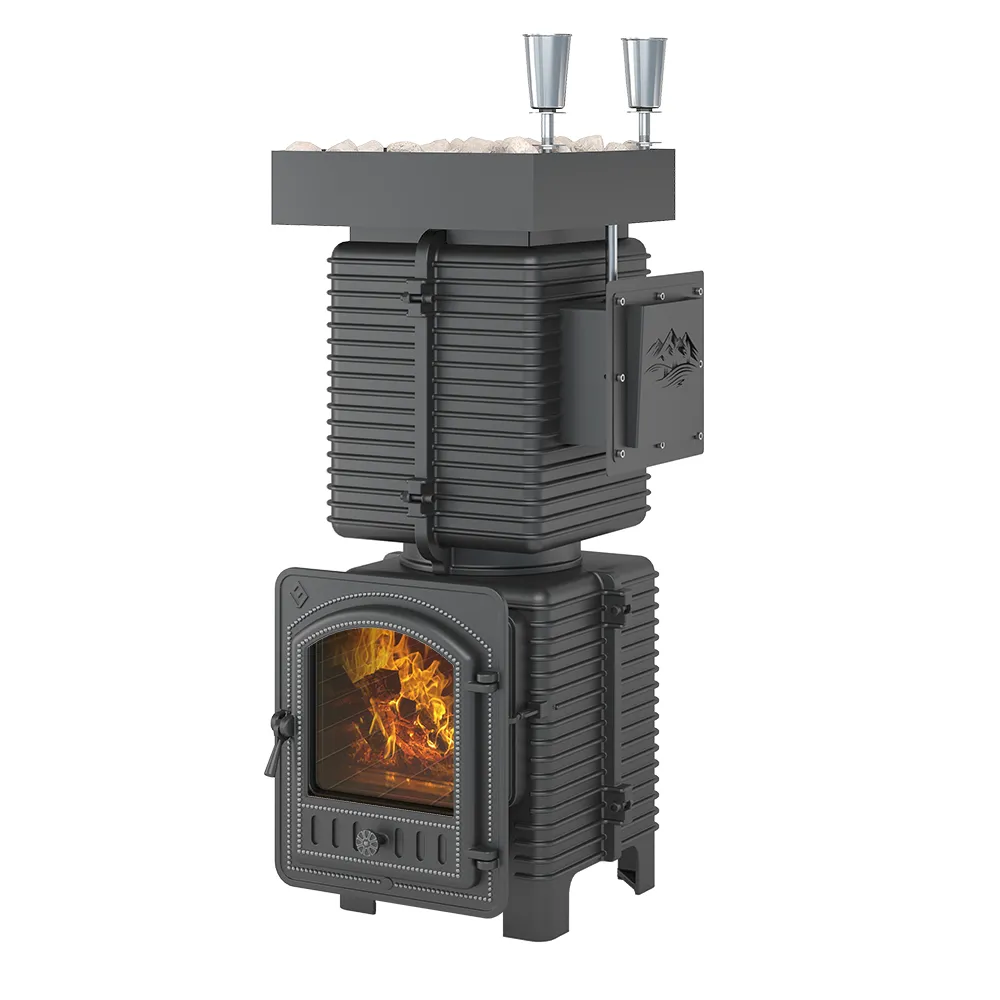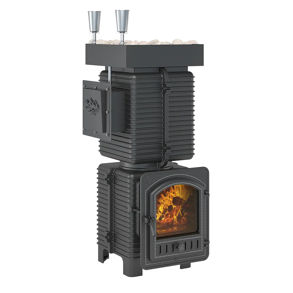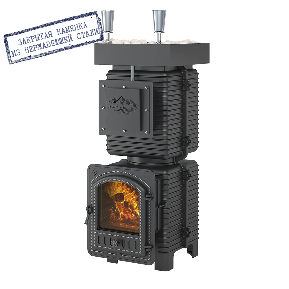 Закрытая каменка из нержавеющей стали толщиной 4 мм сверху и снизу имеет закруглённую конструкцию. Каменка находится на месте пламегасителя. Огонь при горении дров охватывает каменку с четырёх сторон, что ускоряет нагрев заклада. Закрытая каменка рассчитана на размещение 60 кг камня для бани, создаёт массивный тепловой заряд. Внешний корпус изготовлен из чугуна, его части крепятся друг к другу по типу «паз-гребень» с использованием термостойкого герметика.