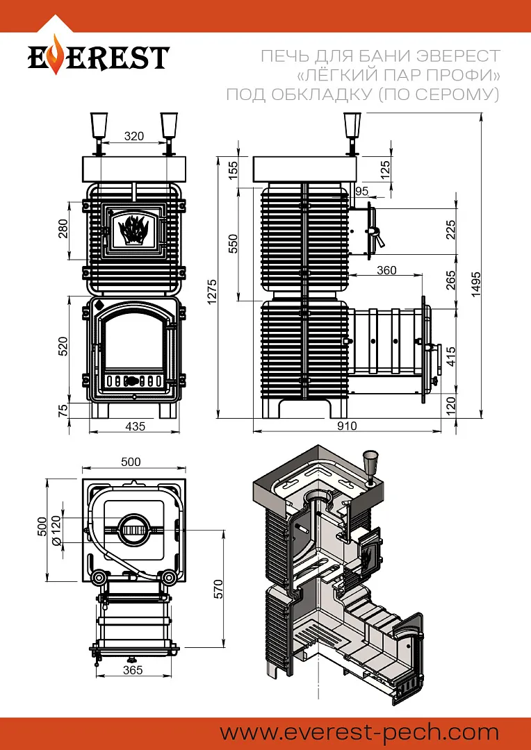 Печь для бани Эверест "Легкий пар Профи" под обкладку (по-серому)
