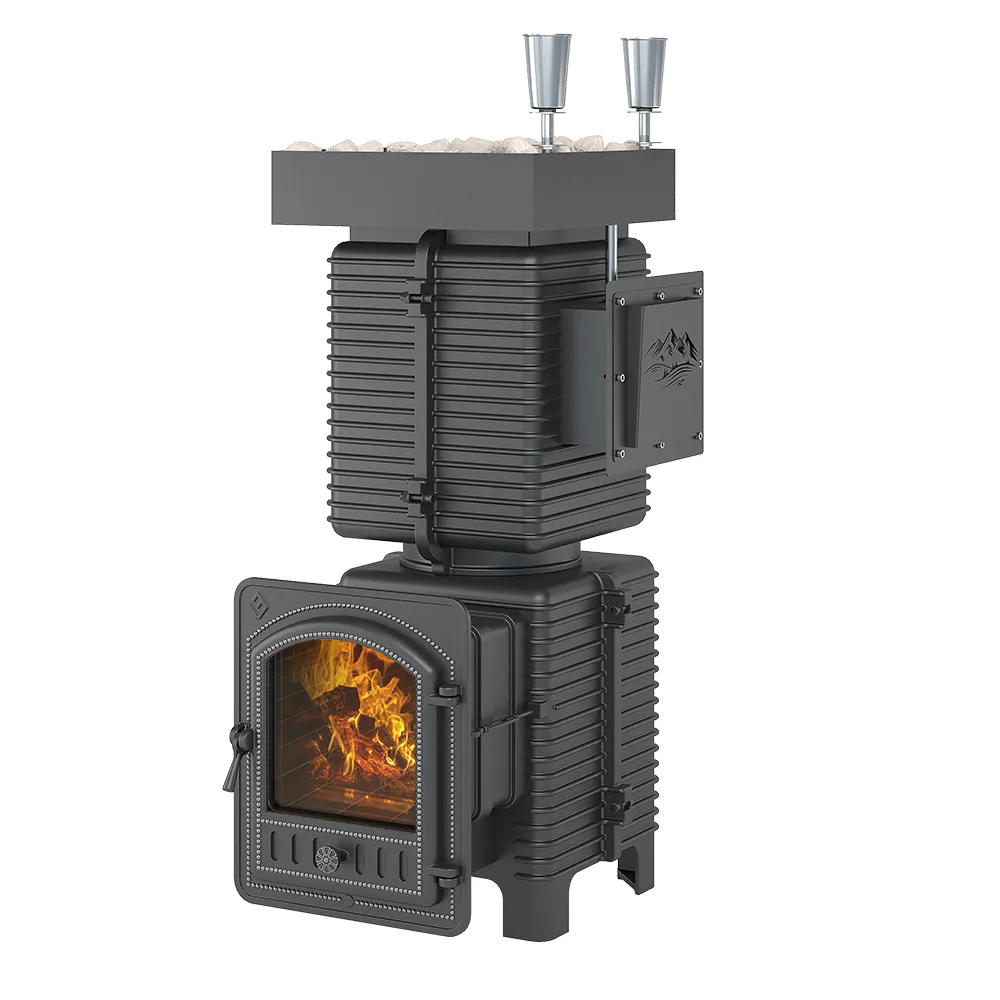 Закрытая каменка из нержавеющей стали толщиной 4 мм сверху и снизу имеет закруглённую конструкцию. Каменка находится на месте пламегасителя. Огонь при горении дров охватывает каменку с четырёх сторон, что ускоряет нагрев заклада. Закрытая каменка рассчитана на размещение 60 кг камня для бани, создаёт массивный тепловой заряд. Внешний корпус изготовлен из чугуна, его части крепятся друг к другу по типу «паз-гребень» с использованием термостойкого герметика.