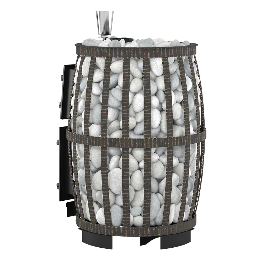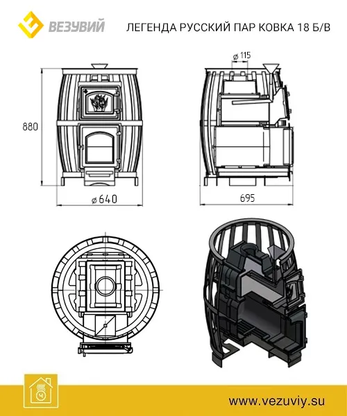 Новая линейка дровяных печей для бани Легенда Русский пар Ковка 18 б/в рассчитанные на парное отделение объемом от 8 до 18 м3. Легенда Русский пар Ковка 18 б/в отличается от своей предшественницы дровяных печей для бани Легенда Ураган прежде всего наличием закрытой каменки, которая охваченная круговым потоком пламени, в которой камни прогреваются до температуры 600 °С, что позволяет создать в парилке наиболее благоприятный микроклимат, не пересушивая и не перегревая воздух.