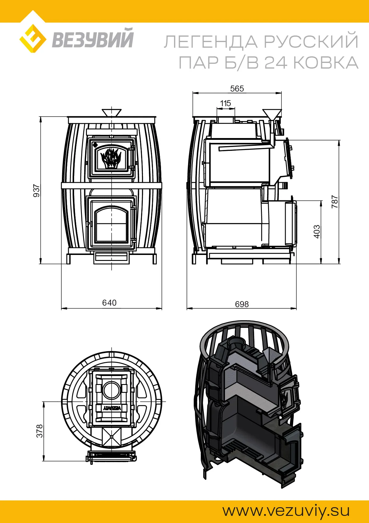 Новая линейка дровяных печей для бани Легенда Русский пар Ковка 24 б/в рассчитанные на парное отделение объемом от 12 до 24 м3. Легенда Русский пар Ковка 24 б/в отличается от своей предшественницы дровяных печей для бани Легенда Ураган прежде всего наличием закрытой каменки, которая охваченная круговым потоком пламени, в которой камни прогреваются до температуры 600 °С, что позволяет создать в парилке наиболее благоприятный микроклимат, не пересушивая и не перегревая воздух.
