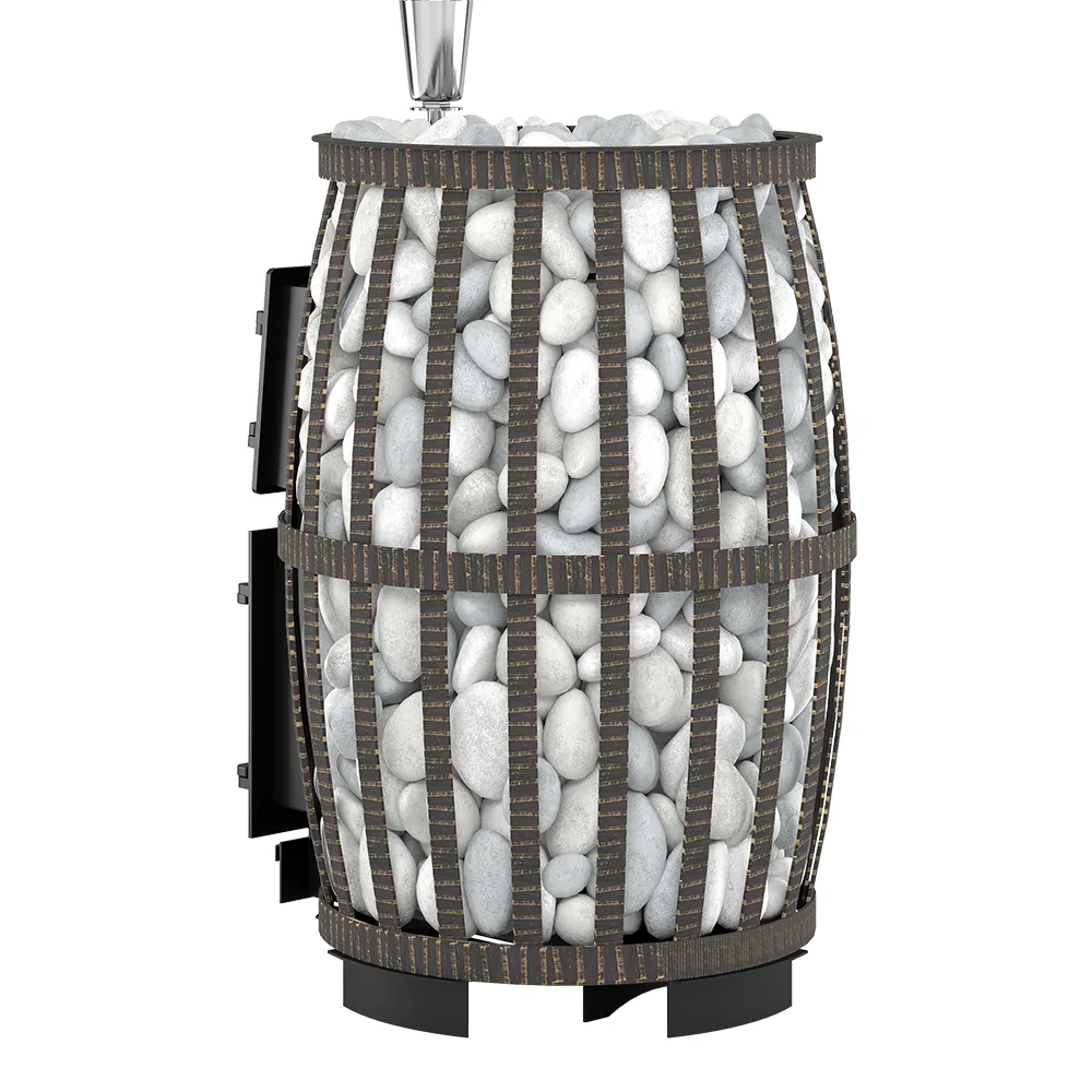 Вода подается в самую горячую центральную часть закрытой каменки через воронку (при этом дверь закрытой каменки должна быть приоткрыта для поступления мелкодисперсного пара в парное отделение). Все элементы топки отлиты из жаропрочного чугуна и соединены между собой с помощью болтового соединения через термостойкий шнур и герметик, а закрытая каменка изготовлена из жаростойкой высоколегированной 4 мм нержавеющей стали.