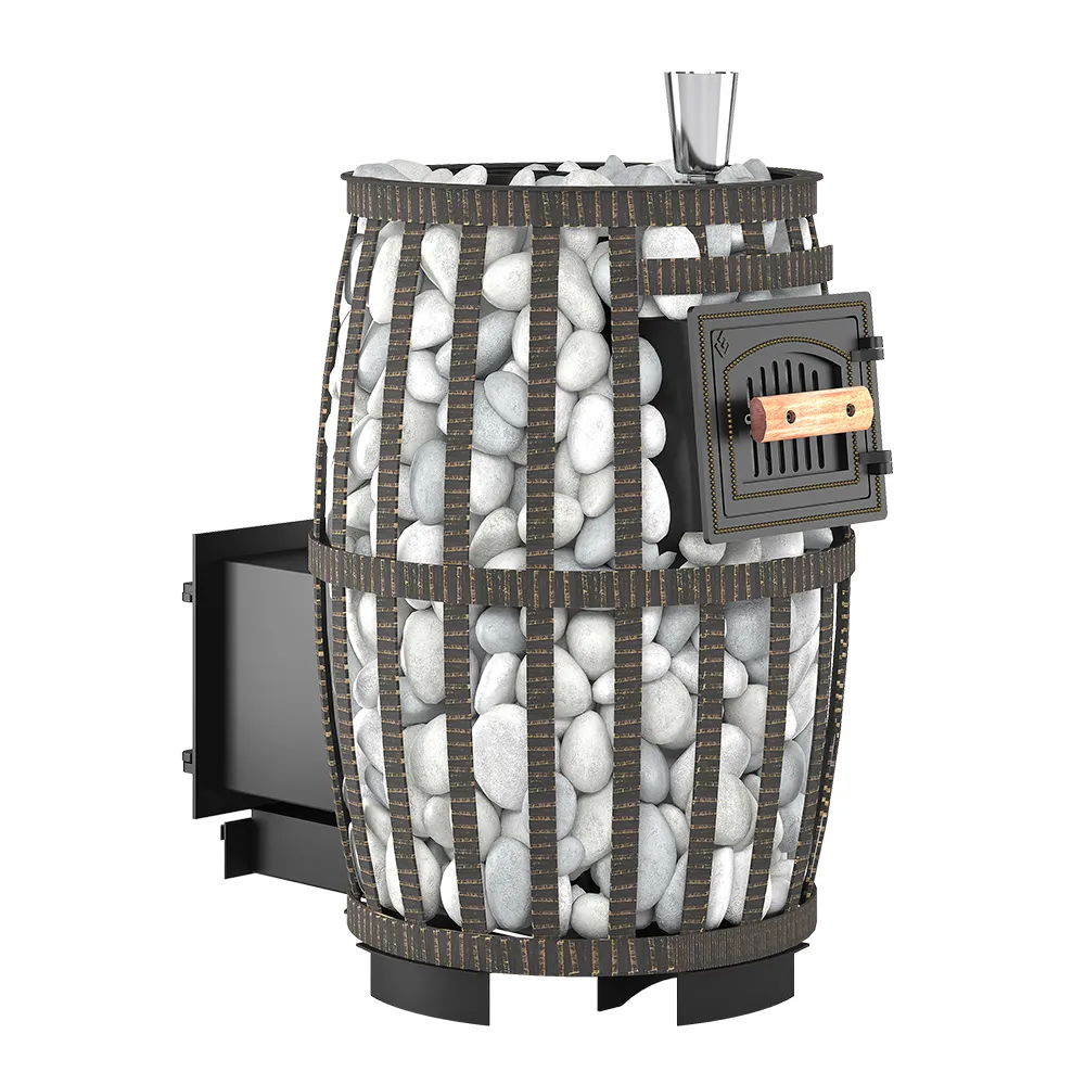 Вода подается в самую горячую центральную часть закрытой каменки через воронку (при этом дверь закрытой каменки должна быть приоткрыта для поступления мелкодисперсного пара в парное отделение). Все элементы топки отлиты из жаропрочного чугуна и соединены между собой с помощью болтового соединения через термостойкий шнур и герметик, а закрытая каменка изготовлена из жаростойкой высоколегированной 4 мм нержавеющей стали.