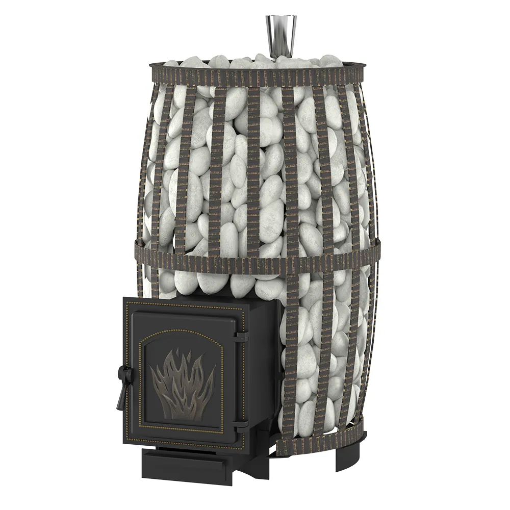 Новая линейка дровяных печей для бани Легенда Русский пар Ковка 30 (271) рассчитанные на парное отделение объемом от 14 до 30 м3. Легенда Русский пар Ковка 30 отличается от своей предшественницы дровяных печей для бани Легенда Ураган прежде всего наличием закрытой каменки, которая охваченная круговым потоком пламени, в которой камни прогреваются до температуры 600 °С, что позволяет создать в парилке наиболее благоприятный микроклимат, не пересушивая и не перегревая воздух.