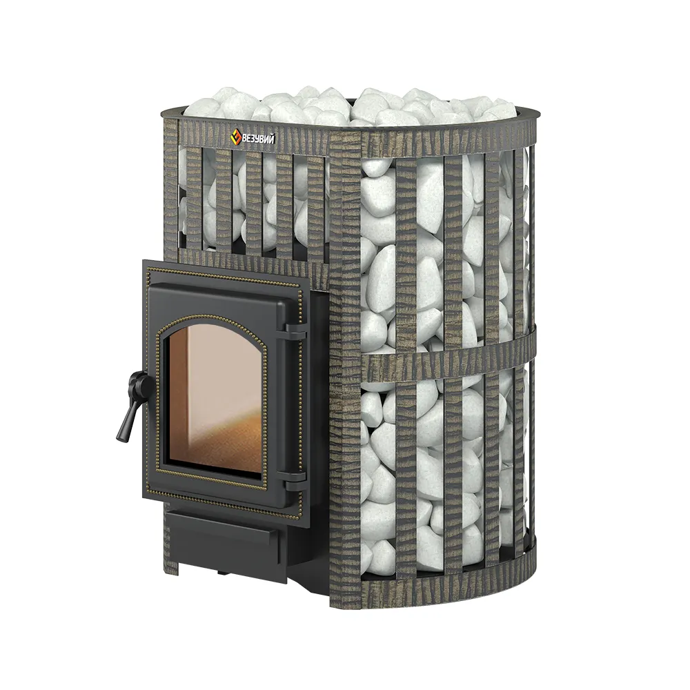 Банная чугунная печь Легенда Ковка (270) б/в укомплектована чугунной герметичной дверцей с жаропрочным стеклом «SHOT ROBAX». Конвекционно-вентилируемый кожух "Ковка" изготовлен из металлической текстурированной полосы покрашенной термостойкой краской и покрытая патиной «Бронза».