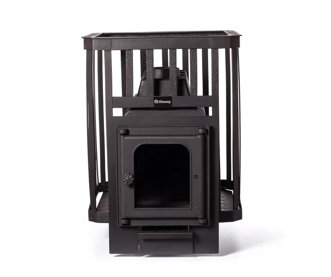 Топка выполнена из толстостенного чугуна методом литья — это обеспечивает устойчивость к коррозии и прогоранию, отличную теплопроводность и долгий срок службы. Печь равномерно нагревает помещение и создаёт мягкий пар за счёт каменки на 180 кг.