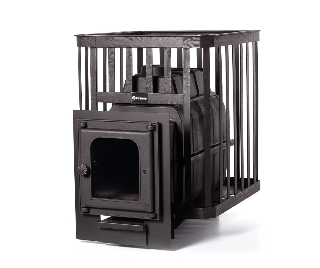 Банная печь ПароВар 24 Сетка-Ковка (302) от российского бренда «FireWay» предназначена для использования в банях и саунах объемом от 14 до 24 м³. В качестве топлива рекомендуется использовать дрова, брикеты и бурый уголь.