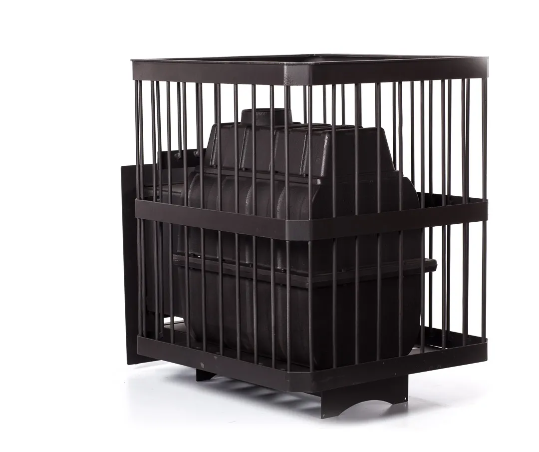 Чугунная банная печь ПароВар 24 сетка-прут (402) – доступная по стоимости, эффективная и надежная модель дровяной печи-каменки с чугунной самоохлаждающейся дверцей и выносной топкой. Это оптимальное решение для парной и смежных с ней помещений, объем которых не превышает 24 м3. Вместительная каменка на 180 кг выполнена из стального прута, дополнительную жесткость конструкции придают наваренные по кругу (сверху, снизу и по центру) ребра.