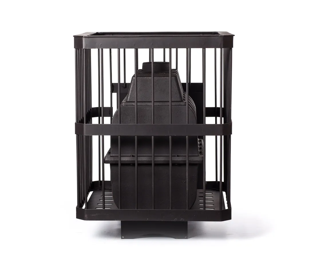 внушительный объем каменки позволяет аккумулировать большое количество тепла и защищать помещение от жесткого инфракрасного излучения