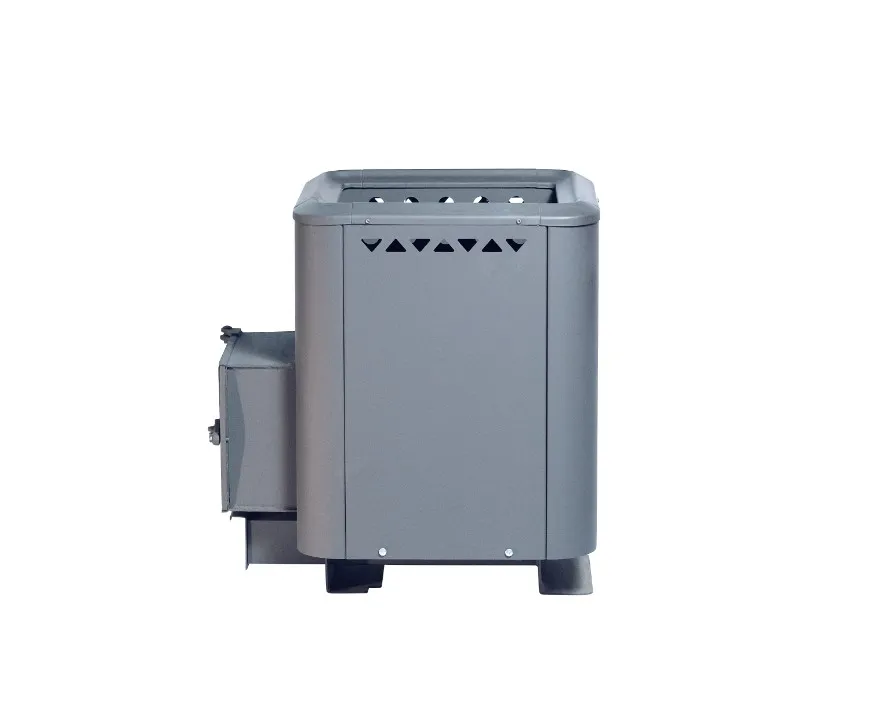 Чугунная банная печь "Сибирь-15" представлена в модификации с выносным топочным каналом и конвекционным кожухом из металла, что позволяет устанавливать ее в смежное помещение, откуда и производится закладка дров. Конвекционный кожух представляет собой окрашенный жаростойкой эмалью защитный металлический экран, ускоряющий процесс нагрева парильного и смежных помещений.
