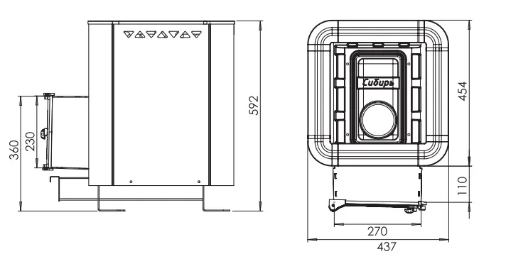 Чугунная печь для бани Сибирь 15 Чугунная дверца с ВТК конвекционная