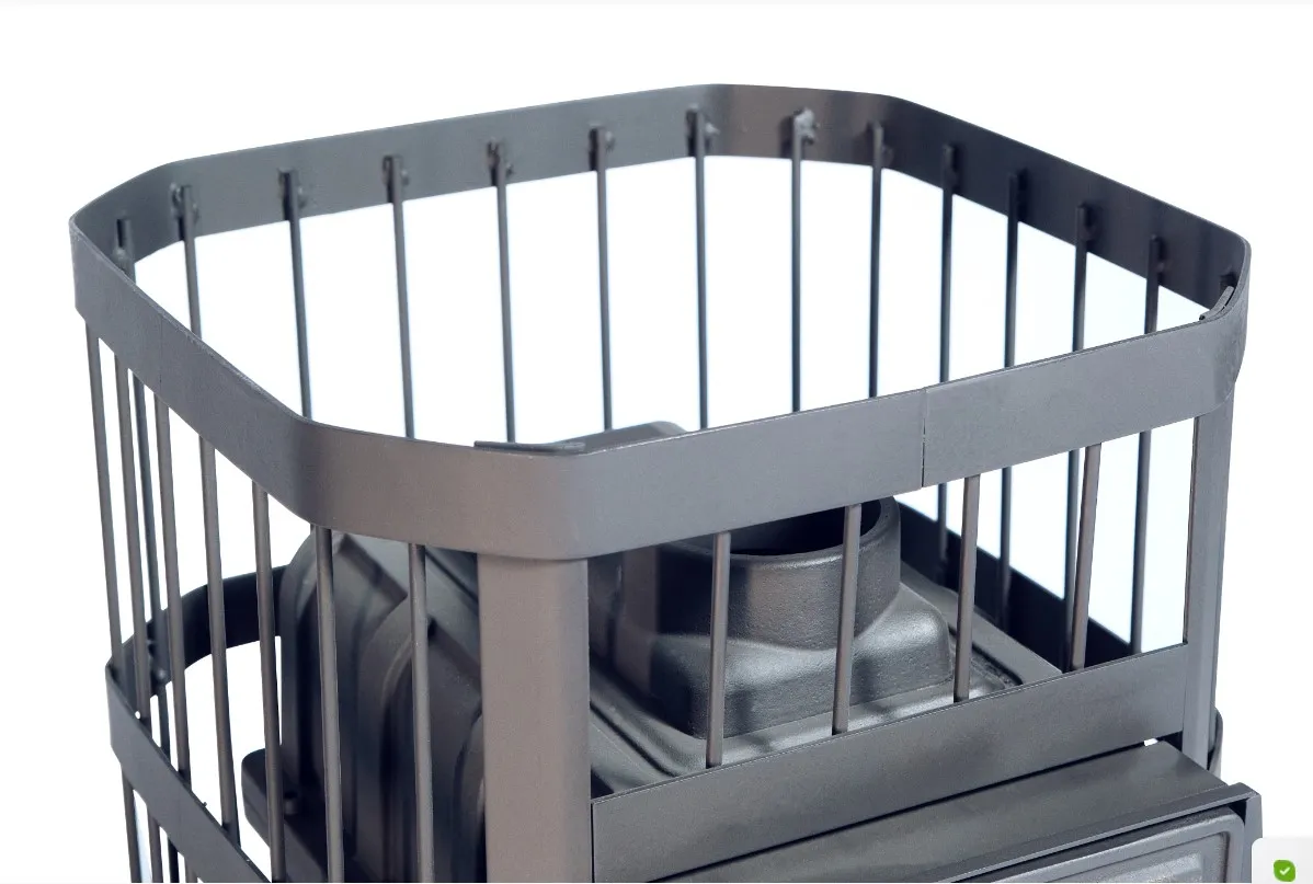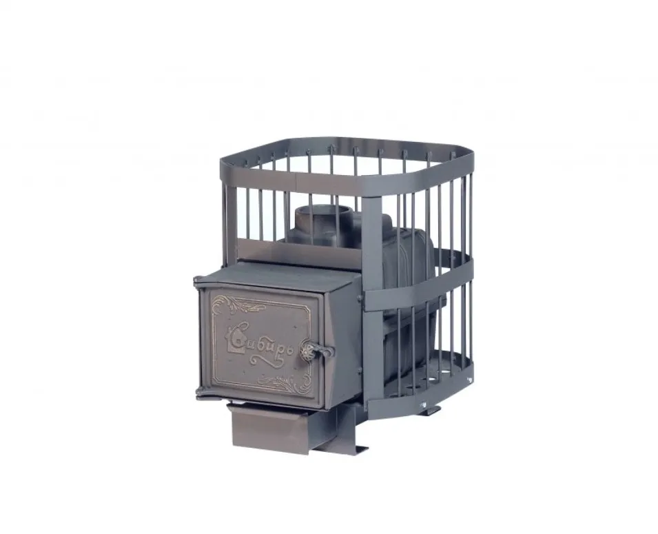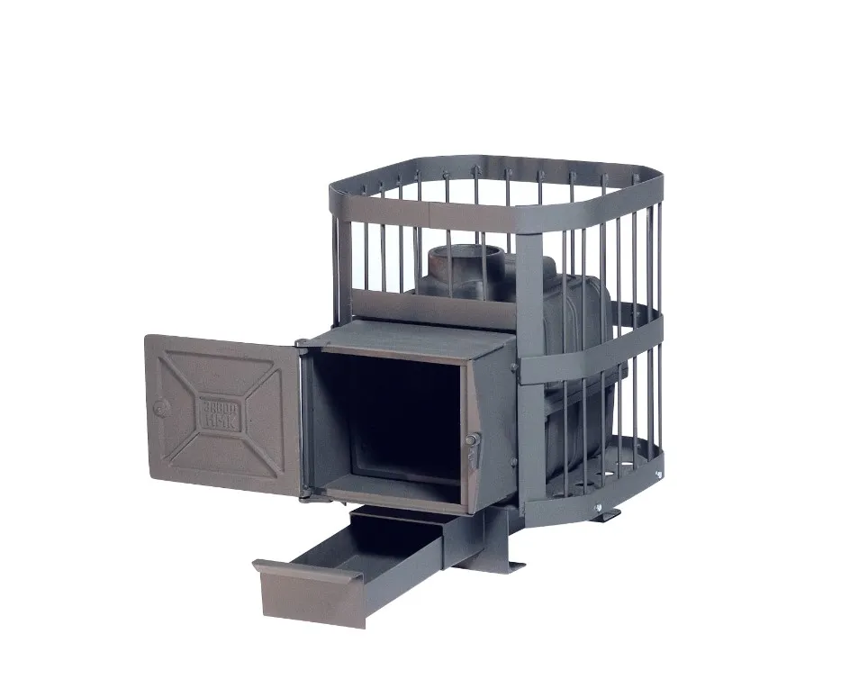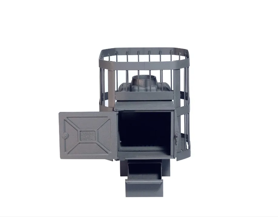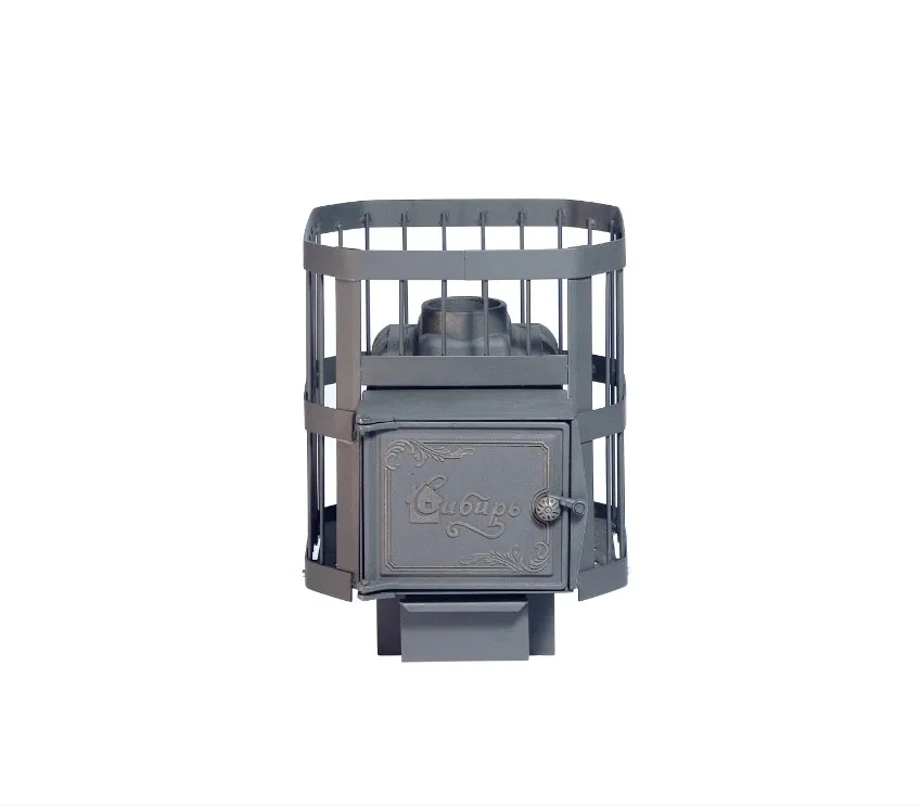 Чугунная банная печь Сибирь 15. Чугунная дверца с ВТК (сетка)