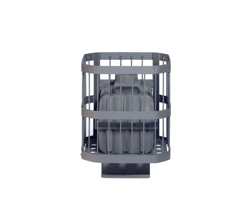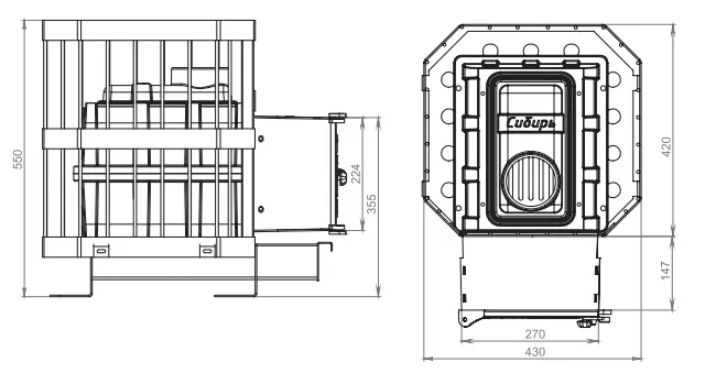 Чугунная банная печь "Сибирь-15" представлена в модификации с выносным топочным каналом и конвекционным кожухом из металла, что позволяет устанавливать ее в смежное помещение, откуда и производится закладка дров. Конвекционный кожух представляет собой окрашенный жаростойкой эмалью защитный металлический экран, ускоряющий процесс нагрева парильного и смежных помещений.