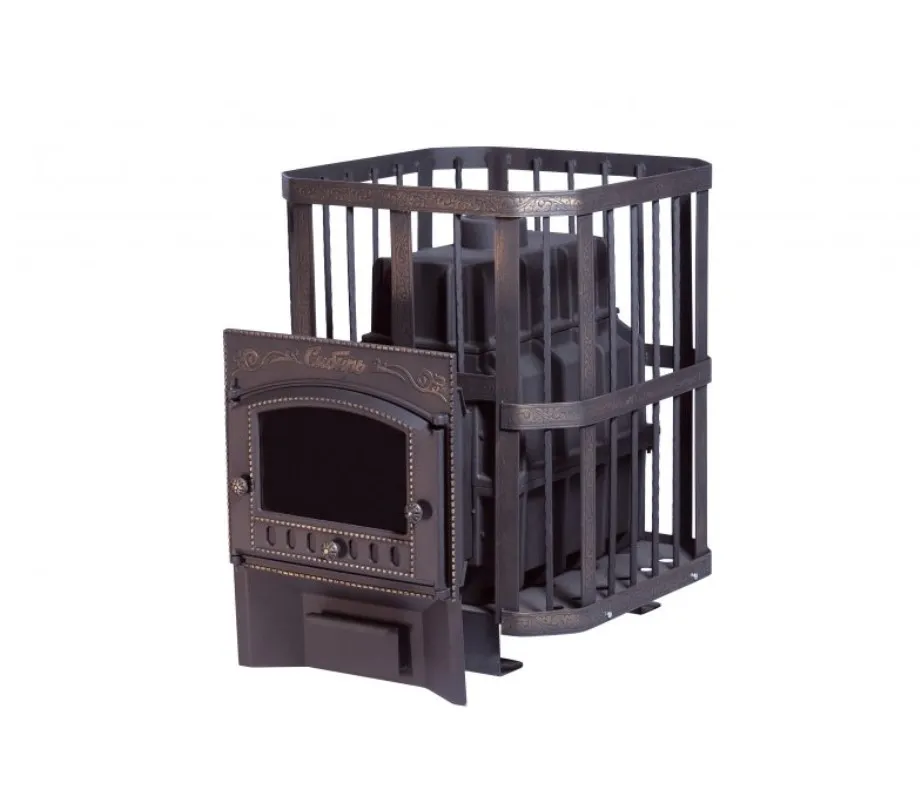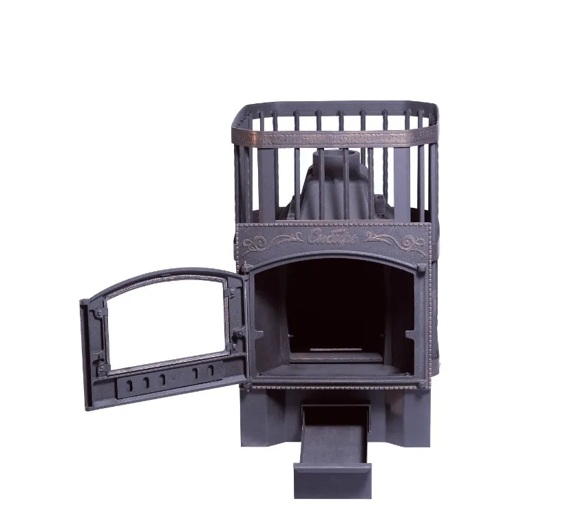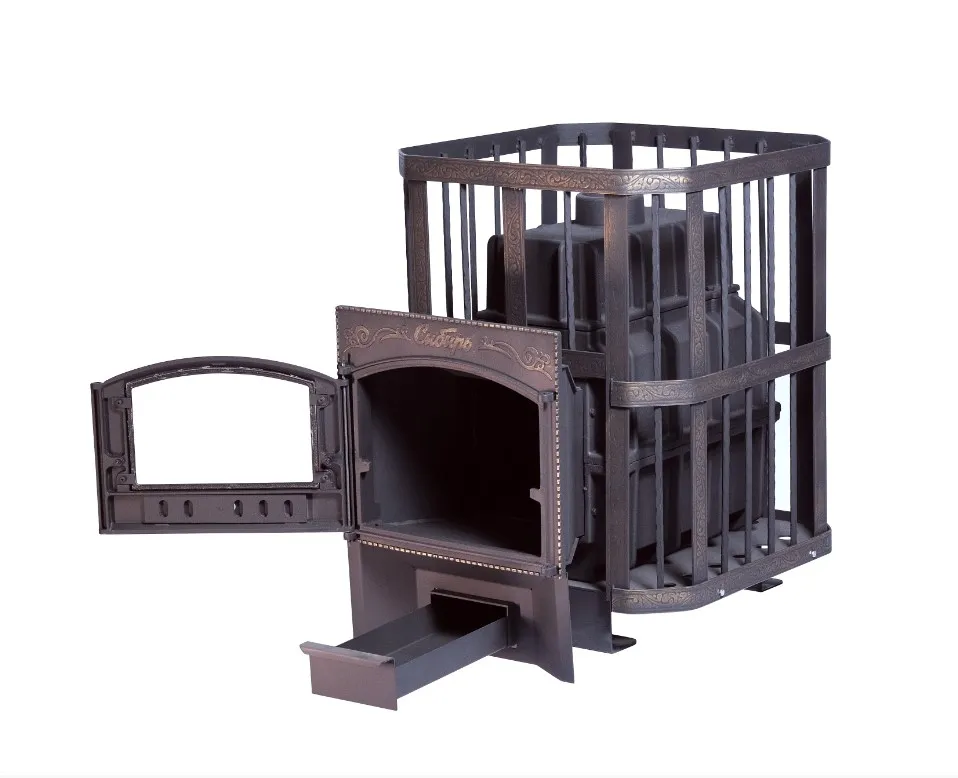 Чугунная печь для бани Сибирь 24 Каминная дверца Сибирь сетка
