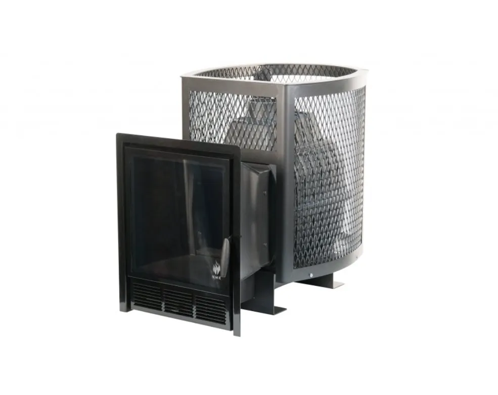 Чугунная банная печь Сибирь-24 ПРО. Панорамная дверца (сетка)