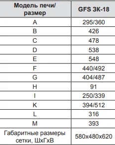 GFS-ЗК в сетке 18 - печь с усиленной каменкой большей массы, с единым углублением внутрь топки для дополнительной укладки чугунного заряда. Теплосъемные шипы, со стороны горения пламени, в разы увеличивают площадь соприкосновения огня с каменкой и ускоряют передачу тепла, а также способствуют лучшему дожигу смешивая потоки пламени и воздуха поступаемого из воздушника. Эти усовершенствования значительно повышают мощность парообразования печи и выдают большее количество пара при непрерывной подаче воды.