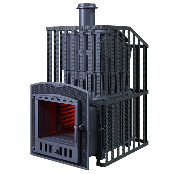 Для быстрого нагрева парной боковые стенки оборудованы конвекционными ребрами не только снаружи, но и на внутренней поверхности. Печь легко модернизируется до полноценной печи для Русской бани путем замены стальной сетки на каменную облицовку без демонтажа дымохода.