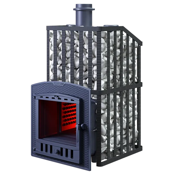 Печи линейки «GROM» имеют в комплекте чугунный короб для установки на каменку и чугунную стартовую трубу длиной 500 мм. Увеличенная масса, толщина боковых стенок 14 мм повышают надежность и теплоаккумулирующую способность.