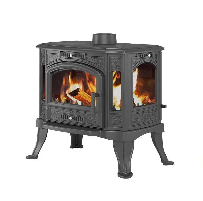 Камин изготовлен из высококачественного чугуна с двойными стенками; большое панорамное стекло;
