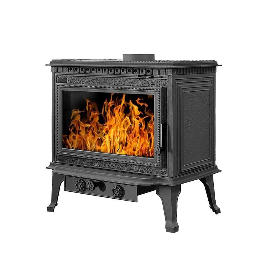 Камин изготовлен из высококачественного чугуна с двойными стенками; большое панорамное стекло;