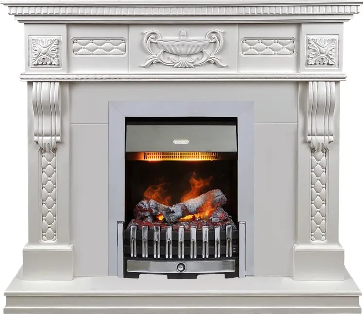 Каминокомплект Corsica - Матовый белый (Ширина 1100) с очагом Danville Chrome FB2