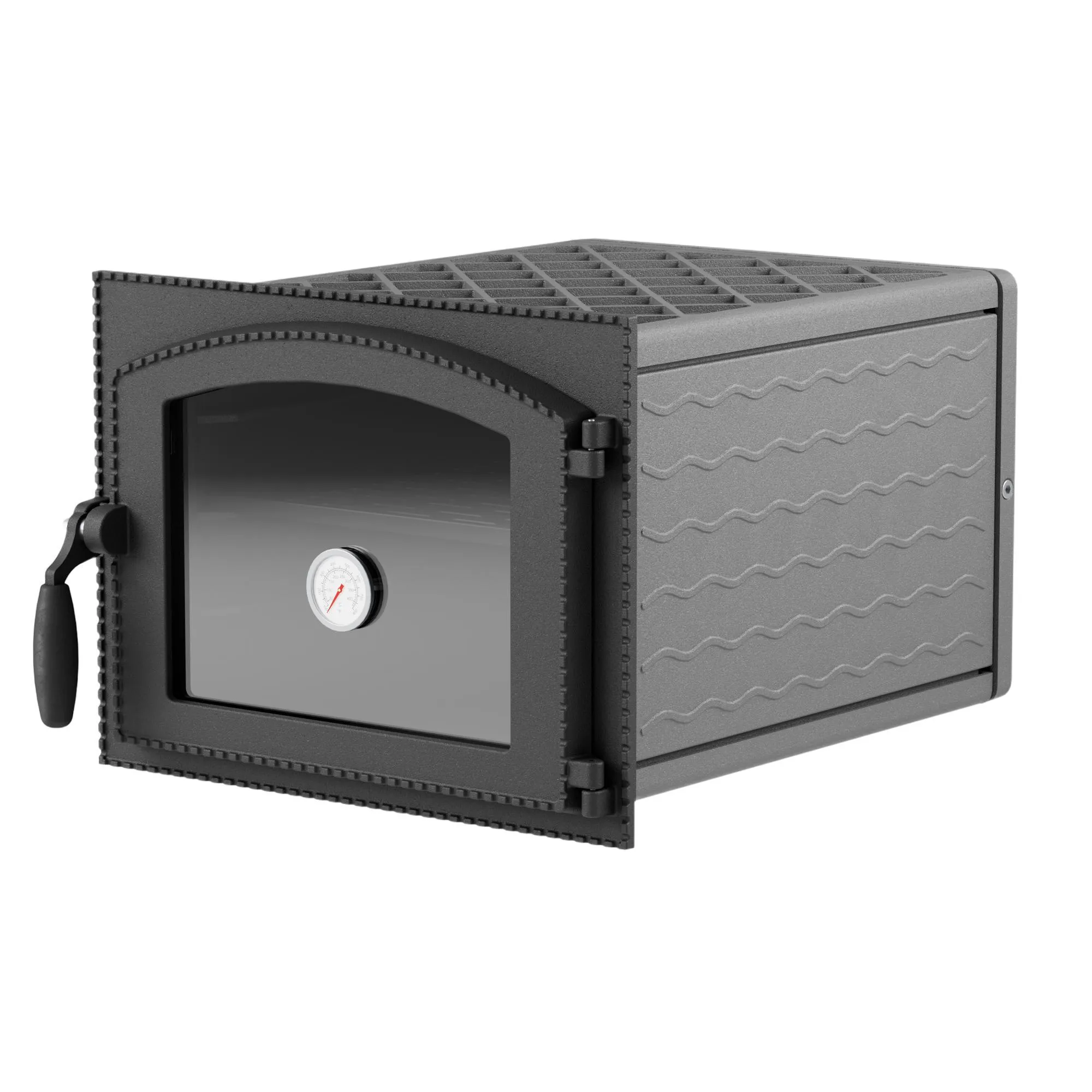 Печная духовка ДП-ДКГ-2АС выполнена из чугуна и оснащена дверцей с термостойким стеклом ROBAX и встроенным термометром. Духовые шкафы, встроенные в современные топочно-варочные печи, используются для выпечки пирогов, приготовления топлёного молока и других блюд, сохраняя традиции русской печи.