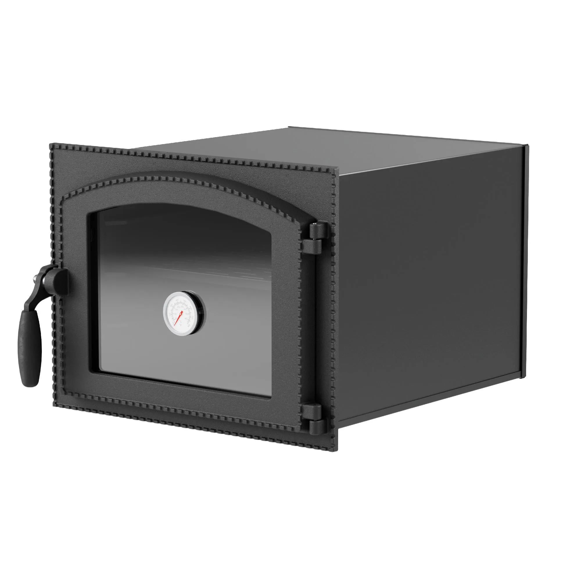 Печная духовка ДПС-ДКГ-2АС оснащена чугунной дверцей с термостойким стеклом ROBAX и встроенным термометром, что позволяет контролировать процесс приготовления, не открывая дверцу. Изделие предназначено для приготовления блюд, сушки овощей, фруктов и мяса. Стальной корпус выполнен из листа толщиной 1,2 мм, что обеспечивает прочность и долговечность.