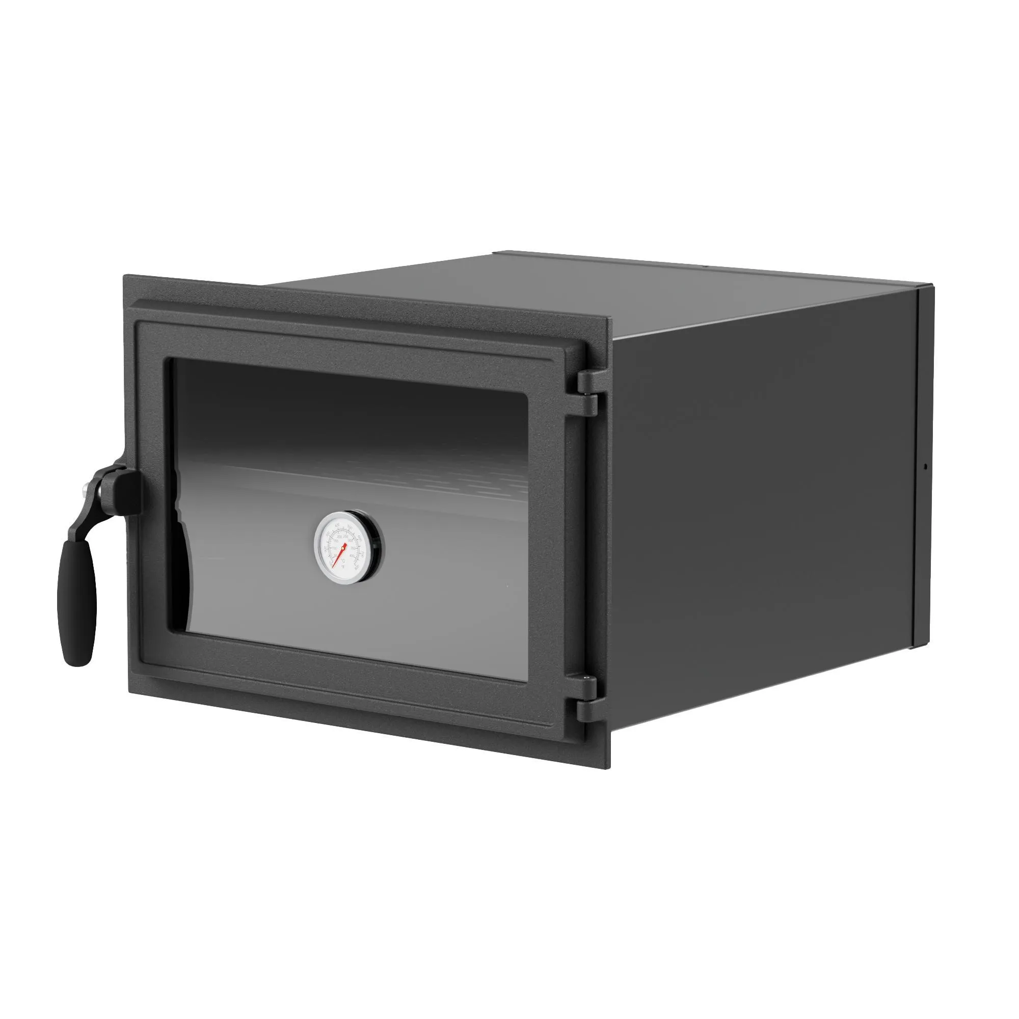 Печная духовка ДПС-ДТГ-6КС оснащена чугунной дверцей «Карелия» с термостойким стеклом ROBAX, которое выдерживает тепловые нагрузки до +760°С, и встроенным термометром. Это позволяет наблюдать за приготовлением блюд и контролировать температурный режим без открывания дверцы. Духовка предназначена для установки в бытовых отопительно-варочных печах, каминопечах и уличных комплексах — для приготовления пищи и обогрева помещения.