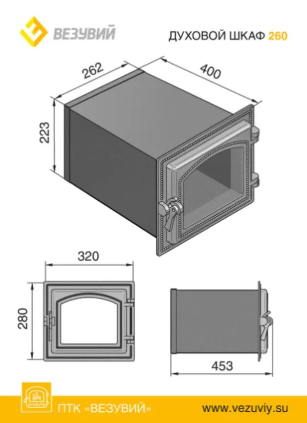 Стальной духовой шкаф с чугунной дверцей ВЕЗУВИЙ 260 (Антрацит)