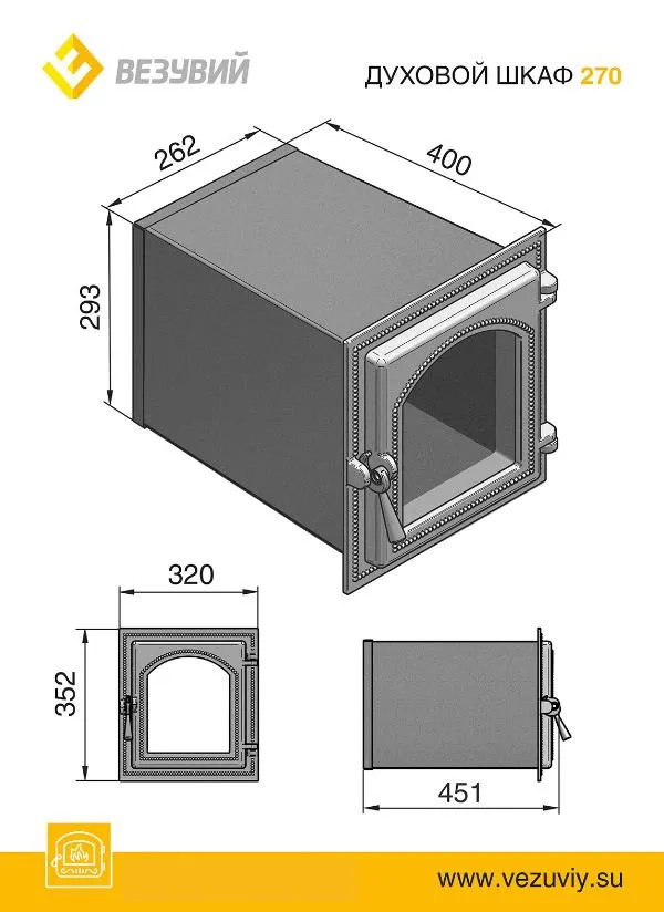 Стальной духовой шкаф с чугунной дверцей ВЕЗУВИЙ 270 (Антрацит)