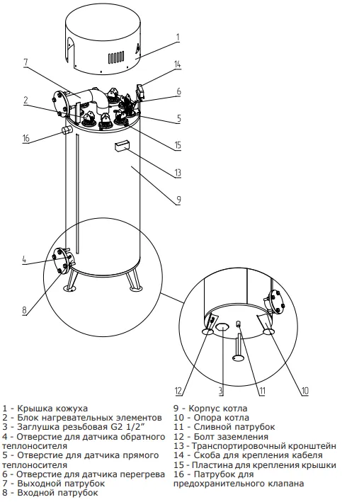 Самые мощные электрокотлы ZOTA промышленной серии «Prom» отличаются от котлов меньшей мощности прежде всего тем, что в силу своих габаритов, они изготавливаются в напольном исполнении, присоединяются к системе с помощью фланцев, а силовая часть и платы электронного управления и программирования смонтированы в отдельном корпусе пульта управления.