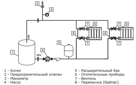 Рисунок 3. Упрощенная схема подключения котла в отопительную систему