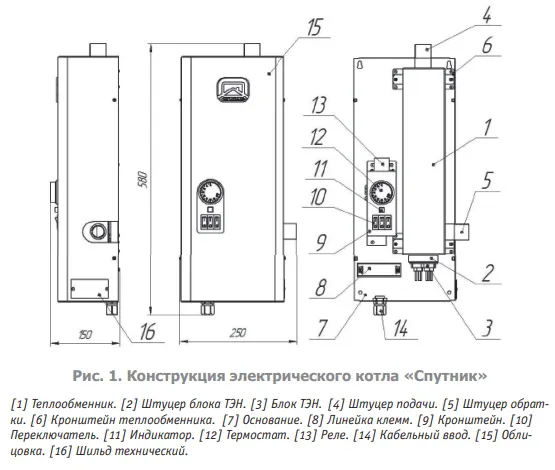 Основные характеристики электрического котла Спутник-6