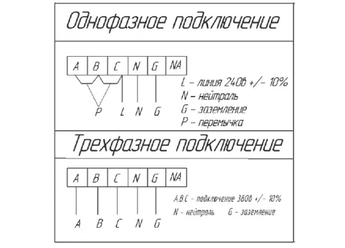 Универсальность подключения к разным типам электросетей. Удобное обслуживание и ремонтопригодность.