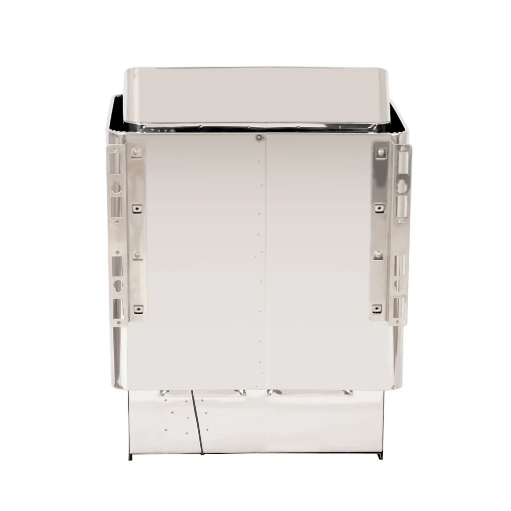 В камеру вокруг электронагревателей укладывается до 10-15 кг камней. На корпусе имеется Встроенный блок управления температурой (термостат).