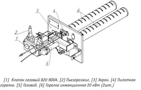 Рисунок 5. Схема установки горелки газовой серии АГГ на котлы КУППЕР