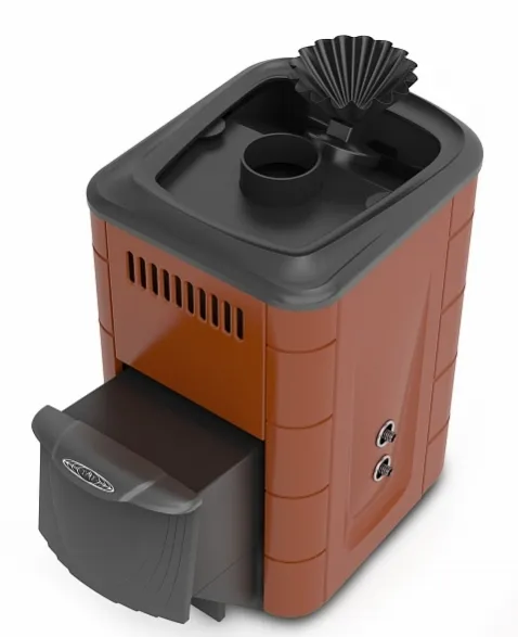Модификация с дверцей антрацит, закрытой каменкой, теплообменником, цвет терракота