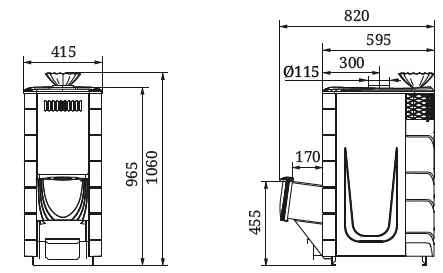 работы теплообменника (в модификациях со встроенным теплообменником) значительно увеличена за счёт того, что он размещен в топке печи и нагревается непосредственно излучением от пламени