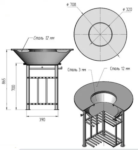 Fantastic Grill Везувий Ø 700 (чаша+подставка+плита+решетка+крышка)