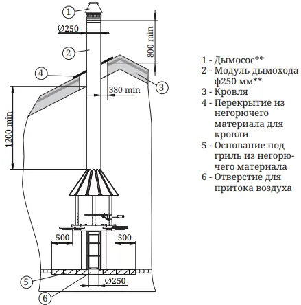 Рисунок 3. Схема монтажа гриля в помещении