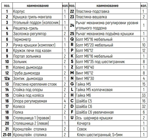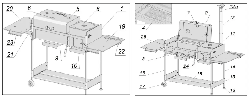 Регулируемый по высоте колосник (угольный поддон) мангала позволяет контролировать степень термообработки продуктов.