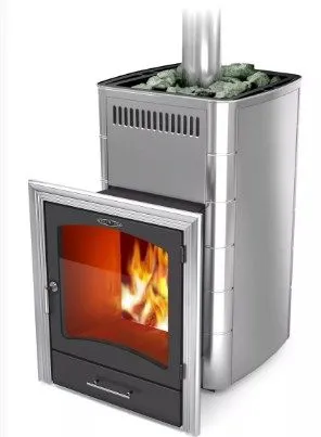 Дровяная банная печь премиум-класса, королева печей TMF, отличающаяся красотой, силой и статью. Она сочетает в себе мощную банную печь и большой красивый камин. Лабиринтный газоход обеспечивает мощный скоростной нагрев парилки объемом до 30 м3 и качественный прогрев каменной закладки массой около 100 кг. «Калина II Inox» идеально подходит для любителей попариться дружной компанией. В большей степени ориентирована на режим финской сауны с повышенной температурой воздуха и пониженной влажностью.