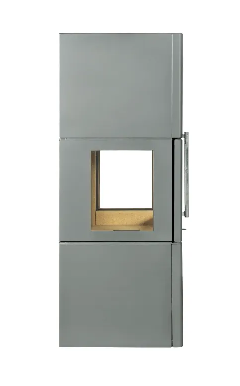 Футеровка из вермикулита отлично отражает тепло обратно в топочную камеру. Камин покрыт высококачественной черной теплостойкой краской подчеркивающей его строгие формы.