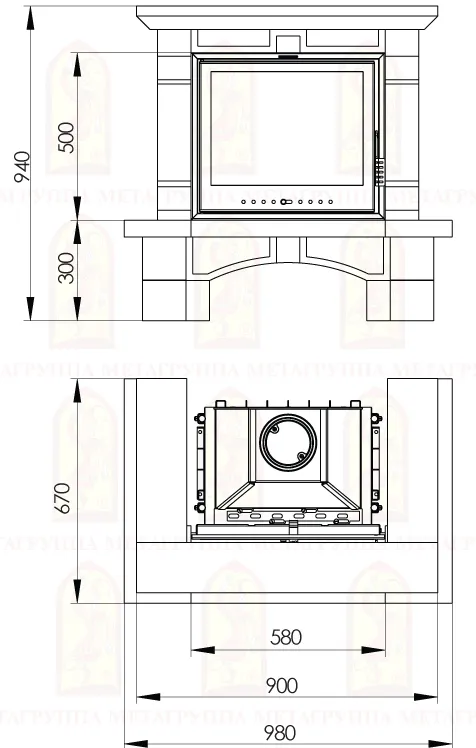 Основным материалом является камень META Stone™, который изготовлен из экологически чистых составляющих компонентов (основа - мраморная крошка). Камень META Stone™ – уникальное техническое решение, он обладает особой прочностью и долговечностью, стойкостью к выцветанию, разработан специально для российского климата. Использование камня META Stone™ позволяет воплощать любые решения по форме и фактуре изделий. Подходящие каминные топки: Аврора 600, Эльба 609